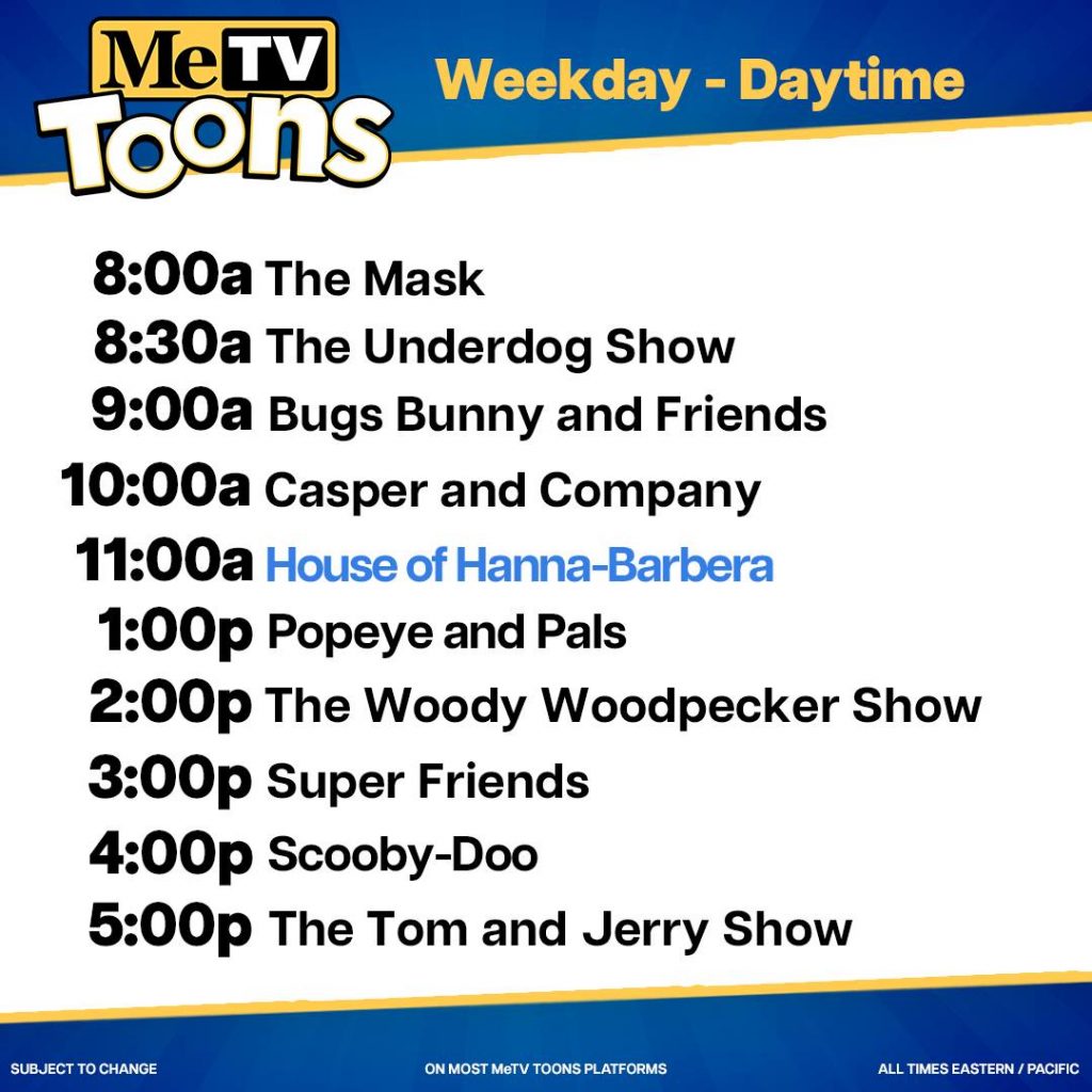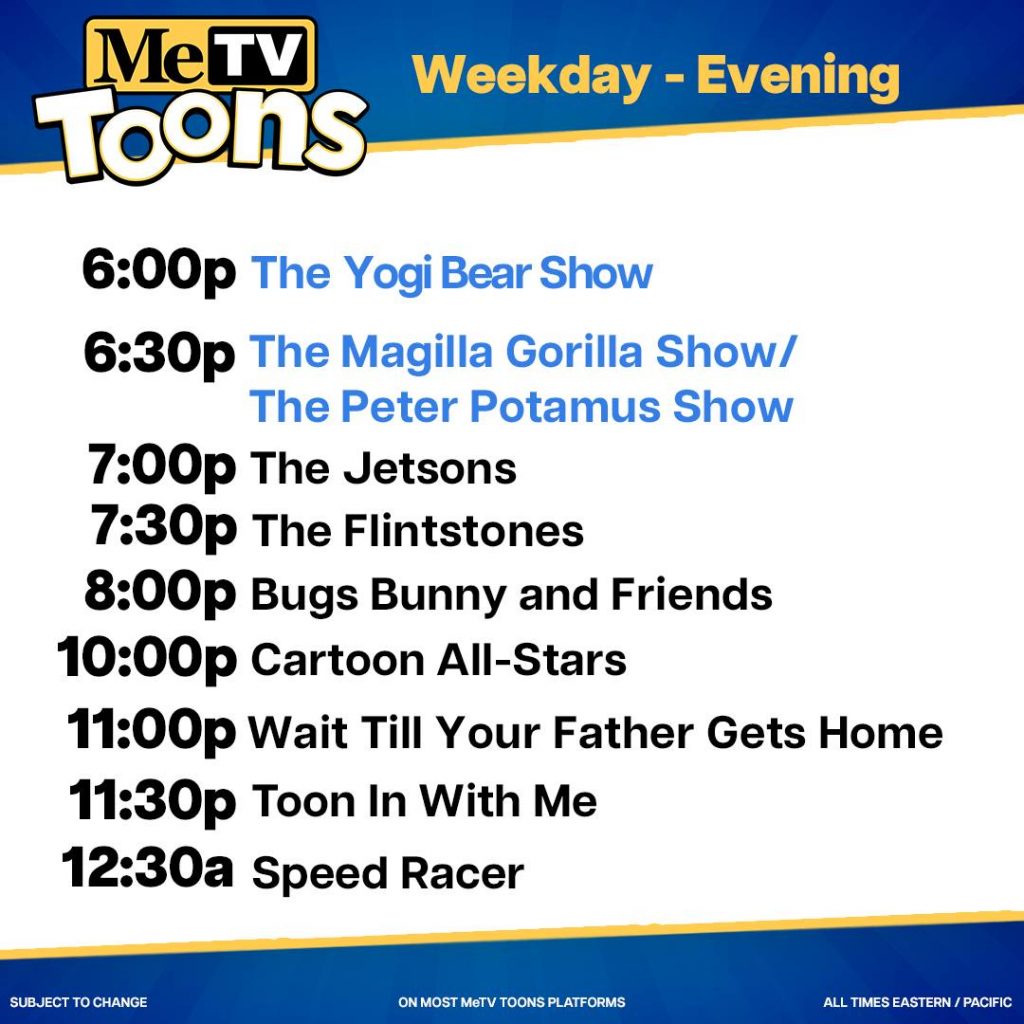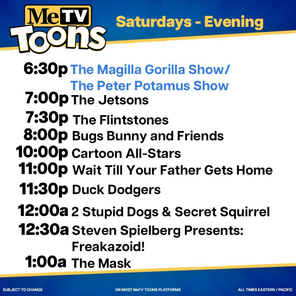 Check your local listings for channel availability. All Times Eastern / Pacific. Subject to Change. Post navigation Looney Tunes – Bugs Bunny (Wet Hare)